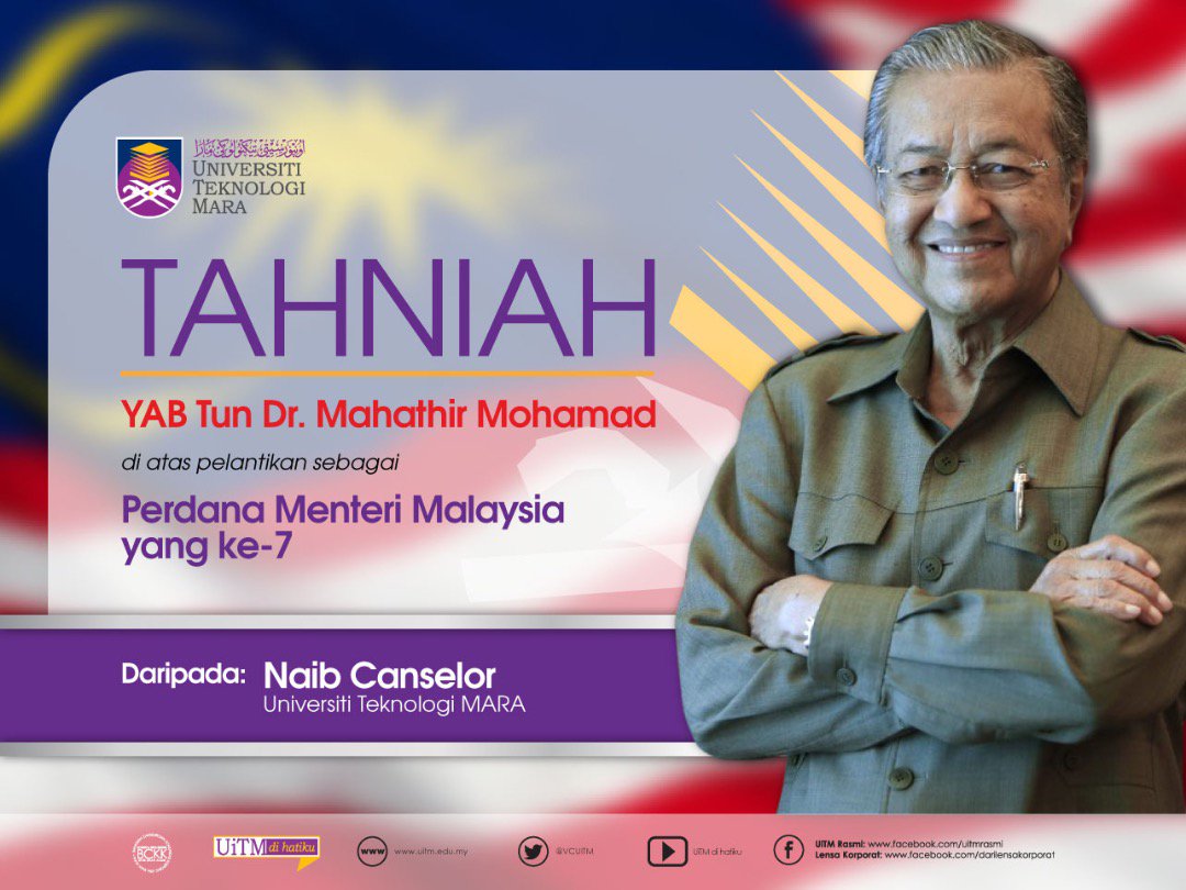 Uitm Official On Twitter Seluruh Warga Universititeknologimara Mengucapkan Setinggi Tinggi Ucapan Tahniah Kpd Yab Tun Dr Mahathir Mohamad Atas Perlantikan Sebagai Perdana Menteri Malaysia Yg Ke 7 Semoga Malaysia Terus Aman Sejahtera Di